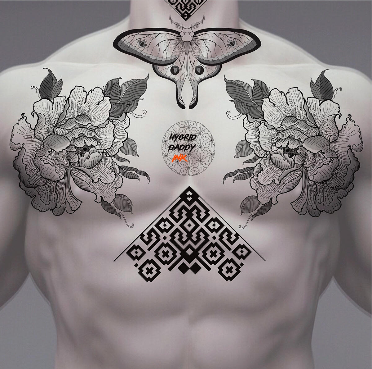 ORNAMENT STYLE STERNUM TATTOO